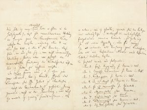 À vrai dire, le Contrebandier n'appartient pas non plus à cette intrigue, et j'ai voulu l'enlever complètement aussi. Mais comme je crois que ce lied en particulier pourrait se révéler un numéro individuel profitable - peut-être le plus profitable - pour l'éditeur, je le fournirai en sus, et vous pouvez le faire imprimer soit comme introduction au Liederspiel, soit comme article séparé avec sa propre page de titre. Le contenu serait donc le suivant: [...] Auriez-vous l'obligeance de m'écrire maintenant dès que possible si nous sommes d'accord sur cette affaire, et si vous pouvez commencer bientôt la gravure, auquel cas je vous enverrai le manuscrit tout de suite. Je me réserve le droit de juger l'aspect de l'oeuvre, qui exige une certaine élégance»...