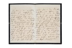 STRAUSS JOHANN FILS (1825-1899) L.A.S. «Johann Strauss», 16 avril [1878, à Jakob ENGEL, directeur du Kroll Oper à Berlin]; 4 pages in-8 à son chiffre (deuil; petite fente au pli); en allemand. Son frère Eduard a dû annuler une série de...