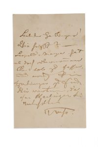 STRAUSS JOHANN FILS (1825-1899) L.A.S. «Strauss», à l'éditeur musical Carl HASLINGER; 1 page in-8 à son chiffre (légères rousseurs); en allemand. Il rappelle que Leopold von MEYER a accepté de faire quelques parties pour [piano] solo....