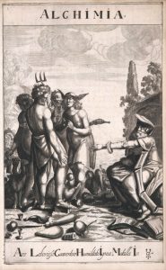 Remarquable et très curieuse illustration gravée en taille-douce, comprenant un frontispice allégorique et 15 (sur 17) planches dont 10 hermético-allégoriques figurant les dix degrés de l'ancienne sapience (l'unité de Dieu et la première matière de la Pierre philosophale, le feu, l'air, l'eau, la terre, le soufre, le mercure ou encore le sel des philosophes).