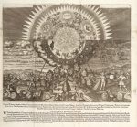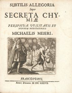 Remarquable illustration gravée en taille-douce, comportant un joli frontispice de Merian avec bordure ornée de scènes historiées, 5 figures à pleine page, 12 figures dans le texte pour les Clefs de Basile Valentin, 15 emblèmes et un blason pour le traité de Lambsprinck sur la Pierre philosophale, et 4 superbes planches dépliantes, placées à la fin du volume, formant à elles-seules une sorte de Kabbala denudata.
