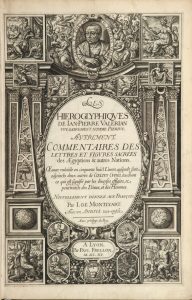 Le Hieroglyphica de Valeriano (1477-1560), dit Pierius, imprimé pour la première fois en 1556, eut un succès considérable et fut traduit dans plusieurs langues. C'est un vaste commentaire ordonné et savant sur les emblèmes et les symboles que l'on trouve dans les hiéroglyphes antiques.