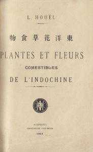 HOUËL (L.). Plantes et fleurs comestibles de l’Indochine. Haïphong, imprimerie Van-Minh, 1911. In-8, demi maroquin grenat à coins, dos à nerfs, non rogné, tête dorée, couverture (Faki). 150 p. – 4 f.