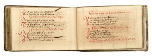 Très charmant recueil de cantiques calligraphié à l'encre brune, chaque initiale et titres de parties copiés à l'encre rouge.