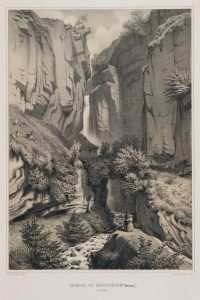 Très rare et bel album de vues des Pyrénées, complet du titre-frontispice et des 22 planches dessinées et lithographiées en deux teintes par Édouard Paris.