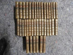 (travaux de vers aux T. 22 et 28, mouillures au T.3 de l'Histoire naturelle et au T.1 de l'Histoire des oiseaux, petits manques de cuir aux dos des tomes 1, 2,5,6, 20 et 21, reliures dépareillées et usées).