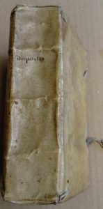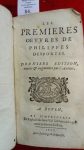DESPORTES (Philippe) — Les premières Œuvres. dernière éd. aug. – Rouen, Raphaël du Petit Val, 1607 – in-12 : 675, [32] p. – vélin souple ancien, auteur ms. au dos, traces de liens.