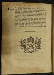 GUICHARDIN (François) — Histoire des guerres d'Italie – Londres, Paul et Isaac Vaillant, 1738 – 3 volumes in-4 : 3 f., xxvi, [16], 620 p./ [4], x, 604 p./ [10], 476, [98] p. table et errata - veau ancien, dos orné à nerfs, p. de titre grenat...
