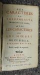 LA BRUYERE — Les caractères. 10e éd. – Michallet, 1699 - in-12 : [4],460, xxviii (discours), 22 (clef) p.- basane ancienne, dos orné à nerfs, accroc en coiffe de tête. (reliure frottée et épidermée)