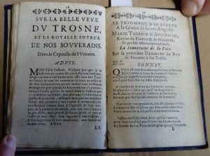 Geneviève – Paris, imprimerie de Jean Julien, 1660 – in-12 : 86, [5] f.; 2 pl. (/3, ste Geneviève, blason du roi) – reliure postérieure bradel papier bleu muet du XIXe .