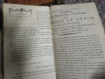 (trou de vers traversant l'ensemble du volume, reliure très frottée, épidermures, manque de cuir en tête, essais de plume aux gardes)