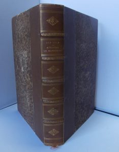 imperio de Marruecos, y continua la provincia de San Diego de Franciscos Descalços de Andalucia en el mismo imperio – Sevilla, Francisco Garay, 1708 – in-folio : [44] dont le titre rouge et noir avec encadrement typo, 830, [18] p. – reliure postérieure demi-veau havane à coins, dos orné à nerfs, tr. rouges. Texte 2 colonnes.