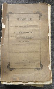 DAVAINE (E.N.) — Mémoire sur un nouveau mode de construction de la vis d'Archimède - Lille, Danel, 1846 – in-8 : 188 p. - 10 pl. dépliantes – broché, couverture imprimée.