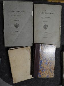 BASCLE de LAGREZE (G.) : • La Navarre française – Paris, Imprimerie nationale , 1891 - 2 volumes gr. in-8 : brochés. (couvertures détériorées). • Le château de Pau 2e éd. – Paris, Dentu, 1857 - In-12 :frontispice - demi-maroquin...