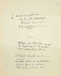 * Une série de manuscrits de travail à l'encre noire sur beau papier vélin (13 pages sur 12 feuillets in-4): plusieurs versions du poème inédit L'accordéon, élaboration du poème du Musée secret «Le matelot sous sa chemise»..., etc.