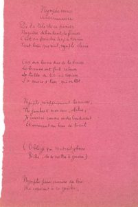 Joli poème érotique de 24 vers, recueilli dans Les Joues en feu(Grasset, 1925).