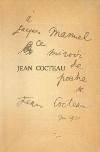 Envoi autographe signé au cinéaste Jacques MANUEL (1897-1968): «à Jacques Manuel ce miroir de poche de Jean Cocteau Juin 1923».