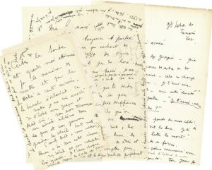 Mes ondes circulent entre Paris et New-York et t'enveloppent»... 15 janvier [1949]: son meilleur souvenir de New-York est leur «déjeuner ensemble et nos rues bras dessus bras dessous. [...] Dans l'avion du retour j'ai écrit une énorme “Lettre aux américains”. Je me demande s'ils la liront et l'admettront»... Milly 2 janvier 1951: il espérait la voir à New York, mais il a été obligé d'annuler son voyage à cause d'une otite. Il demande des nouvelles de son mari [Natalie avait épousé