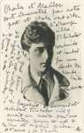 Emilio Terry, Jean-Michel Frank... Il dessine son autoportrait, montrant la forme des chemises qu'il demande à Natalie de lui acheter, avec explications... Saint-Mandrier: il cherche là une maison «entre ces maisons admirables qui bordent le port», que Charles de NOAILLES est prêt à lui donner, maison qui «sera un symbole. Le symbole de mon attente de toi», et qui abritera leur amour; mais il ne voudrait pas qu'elle gronde Jeanjean [Desbordes]... - Sur une carte avec son portrait photographique: «Mon amour, mon bel ange, ma petite bouche carrée, ma tête qui vole - ta lettre ôte le vilain charme qui s'amassait entre nous. Je te retrouve, je te serre de toutes mes forces et je te lèche comme Petit Cru [...] Ne parlons plus que d'amour. Je frotte la photo de ma merveille contre ma poitrine [...] Charles et
