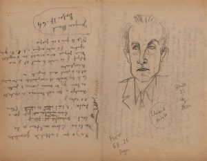 Étonnant portrait de Paul Eluard, avec un brouillon de lettre au maréchal Pétain.