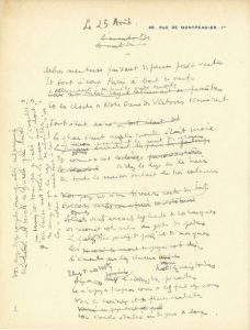 Brouillon et mise au net du poème sur la Libération de Paris.