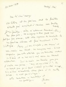 L.A.S. «Jean», Milly 20 novembre 1950, à Mary HOECK; 1 page in-4 (quelques petites déchirures marginales).