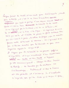 MANUSCRIT autographe signé «Jean Cocteau», Prestige des Mille et Une Nuits, [1955]; 4 pages in-4 au stylo-bille rouge, avec ratures et corrections.