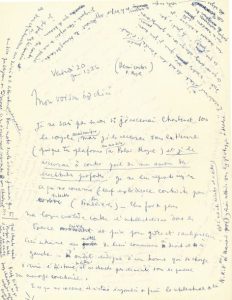 Longue lettre sur l'Académie française et la candidature de l'historien Jacques Chastenet. De nombreux incises et commentaires sont ajoutés en marge, ou tête-bêche, tout autour de la lettre.