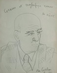 Cocteau», [Max Jacob], 1961; dessin à la mine de plomb, signé et daté en bas à droite, 26 x 20 cm (encadré).