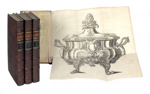 Manque une planche (table de cent couverts) ; 3 planches du t. I sont reliées dans les volumes suivants. Rousseurs et piqûres, réparation à une planche.