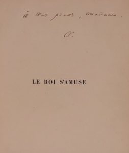 Le Roi s'amuse. Paris, Société de publications périodiques, 1883. In-4, en feuilles, couverture, chemise en demi-maroquin rouge. Luxueuse édition publiée pour le cinquantenaire de ce célèbre drame romantique.