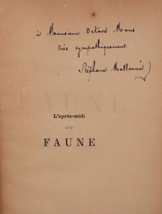 L'Après-midi d'un faune. Paris, Revue indépendante, 1882 [i.e. 1887]. In-8, demi-chagrin blanc, titre estampé en vert sur le mors supérieur, plats de soie verte, dos lisse muet, couverture (Reliure de l'époque). Seconde édition, en partie originale, dite définitive.