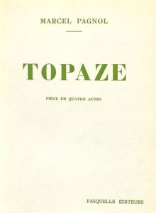 Topaze. Paris, Fasquelle Éditeurs, 1930. In-8, demi-maroquin bleu avec coins, dos lisse, titre doré, couvertures et dos (Alix). Édition originale de cette pièce de Marcel Pagnol.