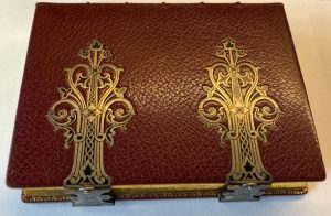 PAROISSIEN ROMAIN. Paris, L. Curmer, 1890. In-8, plein maroquin grenat janséniste à 5 nerfs, double filet doré sur les coupes, dentelle intérieure et tranches dorées sur marbrure, deux larges fermoirs d’argent, gardes de moire rose, chiffre...