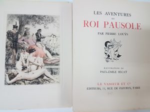 [BÉCAT] – LOUYS (Pierre) - Les Aventures du roi Pausole — Paris, Le Vasseur et Cie Editeurs – Marcel Lubineau, 1947. — In-4 (23x29cm) en feuille sous couverture rempliée imprimée, double emboitage.