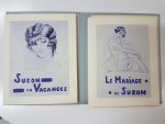 [COURBOULEIX] - Suzon en vacances. — Journal secret d'une jeune fille. - Le mariage de Suzon. Journal secret. — S.l., s.n., s.d., "Aux dépens des Amis de Cupidon", [circa1935]. — 2 vol. in-4, (20,5x25,5cm) en feuilles sous couverture.