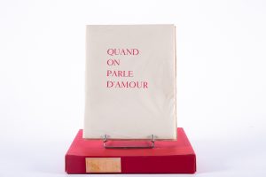 [DOMERGUE] - HAREL-DARC (Pierre) – Quand on parle d’amour, ou le Vrai Dialogue sentimental. — Paris, Collection du Lierre, 1948. In-4 (27x35cm) en feuilles, sous couverture imprimée rempliée et étui-portefeuille.
