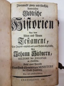 [BIBLE EN ALLEMAND Avec ancien et nouveau testament ] – (…) Biblische (…) Frankfurt, Ministère de Hamburg, 1758 (reprend l'édition de 1713.). — In-8 (10x18cm) (12)-408p-(4).