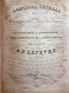 LEFÈVRE (A.P.) - Armorial général de la Chambre des Pairs de France par M. le Chevalier de Courcelles sur les Pairs de France, successeur de M.de Saint-Allajs. — Paris, Lefèvre Graveur, 1822. — 2 parties en un volume in-4 (20,5x27cm).
