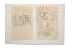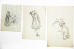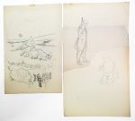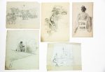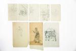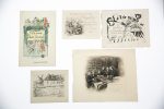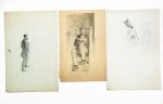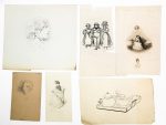 • 60 dessins originaux de François Courboin de taille différentes et techniques différentes, dont certains avec des envois, principalement à son collaborateur Joseph. Guibert. Bon état.