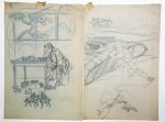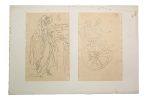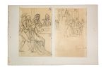 ENSEMBLE DE DESSINS ORIGINAUX de Fr COURBOIN ayant servis à la préparation de l'ouvrage précédemment cité, 36 planches (21,5x32cm) où figures collés un, deux, ou trois dessins originaux au crayon ou à l'encre noire avec de nombreuses...