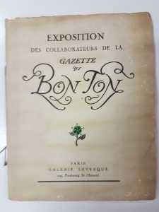CATALOGUE DE L'EXPOSITION DES COLLABORATEURS DE LA GAZETTE DU BON TON — Du 5 décembre 1913 au 3 Janvier 1914. — Préface de Henri Bidou. — Paris, Galerie Levesque, 109, Faubourg St;-Honoré. 1913. — Plaquette (21x25cm) 24p.