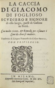 Unique édition italienne de La Vénerie de Du Fouilloux.
