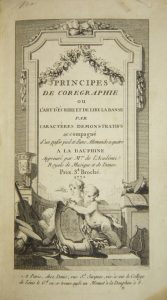 [CHORÉGRAPHIE - CLÉMENT]. — Principes de coregraphie ou l’Art d’écrire et de lire la danse par caractères demonstratifs accompagné d’un Passe pied et d’une allemande a quatre a la Dauphine […]. — A Paris, Chez Denis, s. d. &...