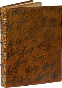 Très rare. Un des plus fameux traité de cuisine du XVIIIe siècle. L'ouvrage est dédié au duc de Tenczin-Ossolinski, premier grand officier de la Maison du roi de Pologne “Mécène de la Cour d'un Nouvel Auguste”. C'est un manuel à l'usage des débutants avec de nombreuses recettes de confitures, pâtes, biscuits, bonbons et nougats, autant de friandises pour lesquelles Gilliers avait mis à contribution ses confrères de Nancy, Cécile, Travers et Touchard. L'ouvrage présente également un grand intérêt artistique, car, inspiré par les grands ornemanistes, il renferme un frontispice et 13 planches dépliantes de modèles de vaisselle, verres, gobelets, sourtouts de table, cafetières, pièces montées et coupes variées. Ces planches dessinées par Dupuis ont été gravées par Lotha. Exemplaire à grandes marges. Bel exemplaire, reliure réalisée avec des fers de l’époque. (Vicaire 405 – Simon 759 – Bitting 185 – Cagle 215 – Oberlé 122).