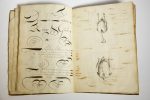 OUVRAGE MI-MANUSCRIT (pour le texte calligraphié à l’encre et accompagné d’ornementations typographiques), MI-GRAVÉ (pour les illustrations sur cuivre), composé de 44 ff. (ou 88 pp.) comprenant un frontispice héraldique, un titre, 29 pp. de texte entremêlées de 37 pp. portant 58 figures gravées, certaines répétées (dont 18 grandes à pleine page, les plus petites généralement réunies par deux ou trois) et de quelques pages blanches.