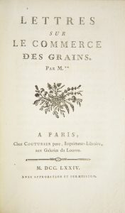 • [CONDORCET (Jean Antoine Nicolas CARITAT DE)]. Lettres sur le commerce des grains. A Paris, Chez Couturier pere, 1774 [1775]. ÉDITION ORIGINALE. 29 pp.