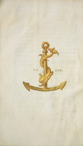 Ancre aldine (rehaussée à l’or) sur le titre et au verso du dernier feuillet.