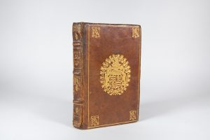 Gilles Corrozet, 1558. — In-12 (98 x 161 mm), basane brune, filet doré encadrant les plats, chiffres aux angles, armoiries au centre, dos à nerfs orné (reliure de l’époque).
