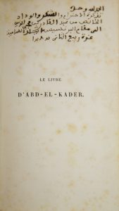 [ABD-EL-KADER]. Le Livre d’Abd-el-Kader intitulé : Rappel a l’intelligent, avis a l’indifférent. Considérations philosophiques, religieuses, historiques, etc., par l’Émir Abd-el-Kader. Traduction par Gustave DUGAT. — Avec une lettre...